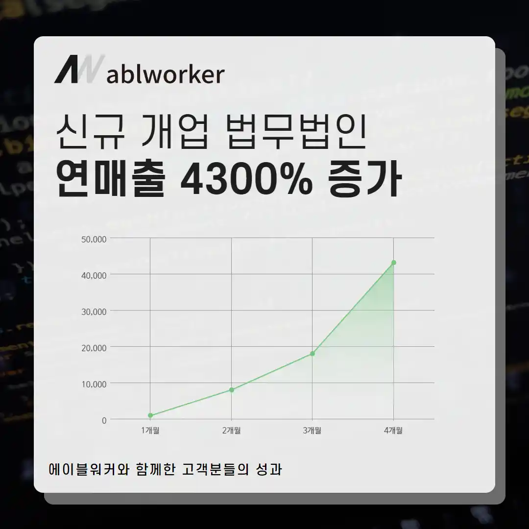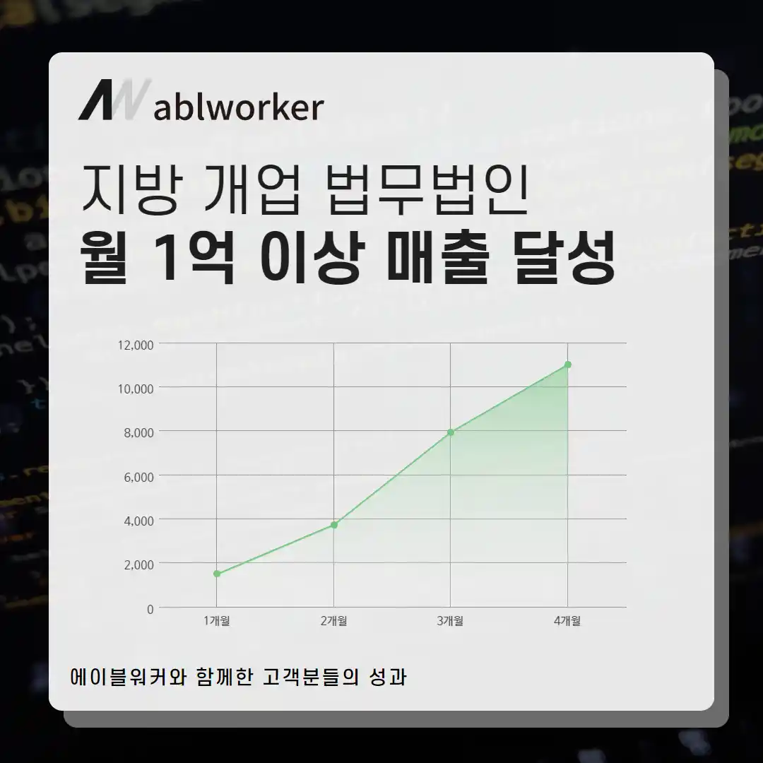 에이블워커 2025년 01월 23일 Tags 성공사례 광고비 100만원 → 수임문의 140건 만든 해결사례 광고비 100만원 → 수임문의 140건 만든 전략! *마케팅 전략은 영업비밀로,