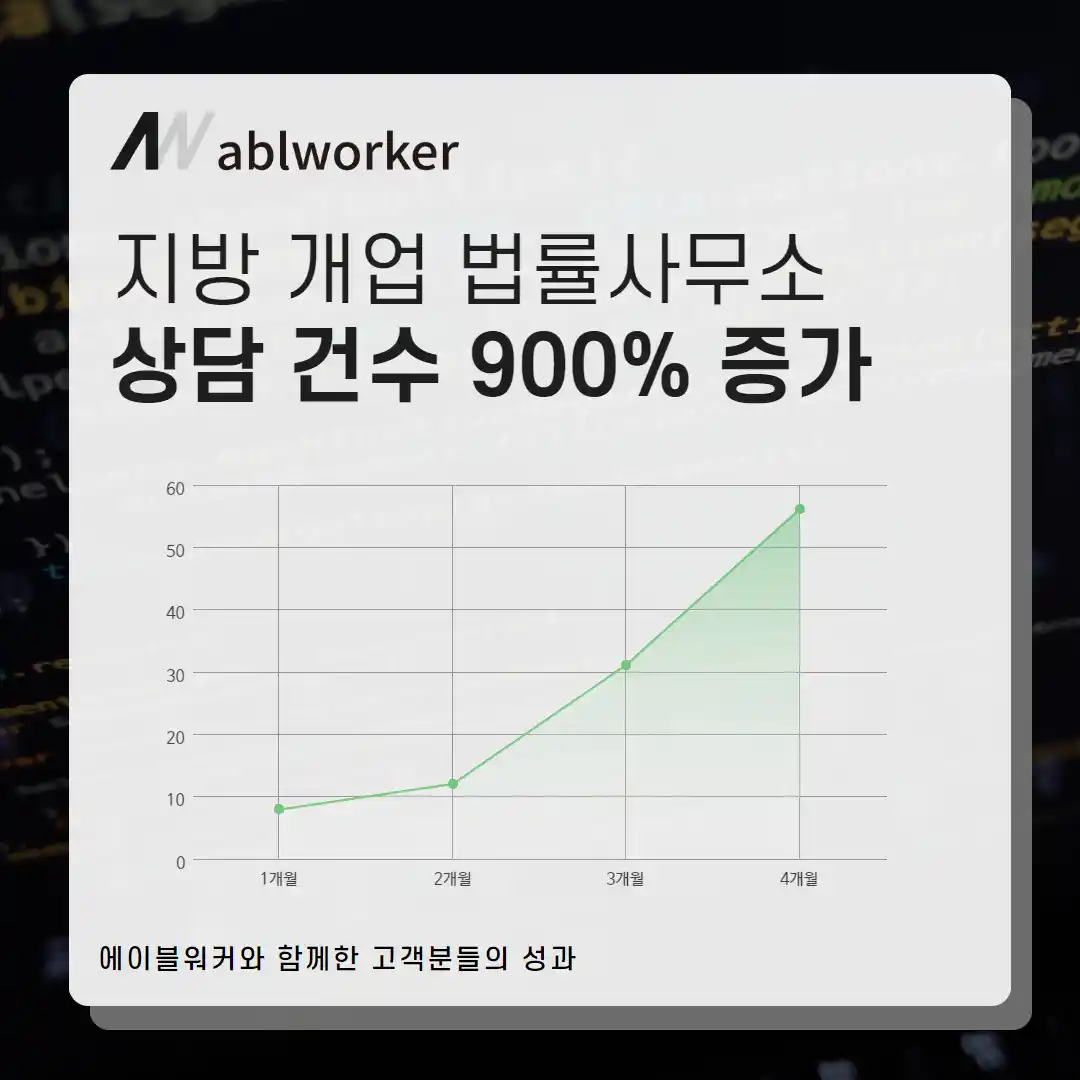 에이블워커 2025년 01월 22일 Tags 성공사례 지방 개업 법률사무소 → 상담건수 900% 증가시킨 사례 지방 개업 법률사무소 → 상담건수 900% 증가시킨 비밀! *마케팅 전략은